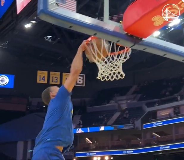 赛前热身环节,库里展示花活儿。