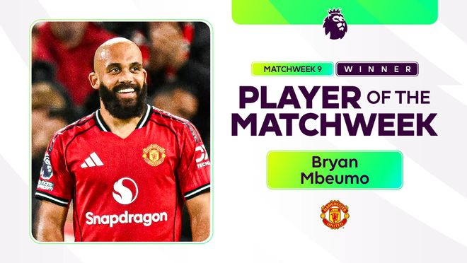 雷速体育10月28日讯 曼联前锋姆伯莫当选英超第9轮最佳球员。这是曼联球员连续第二周斩获该奖项——其队友马奎尔此前刚拿下第8轮最佳球员。