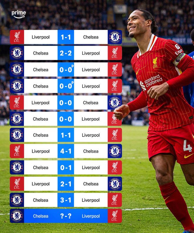 据统计,自2021/22赛季至今,最近11次直接对话中,常规时间内切尔西面对利物浦的战绩为1胜7平3负,只赢下了一场比赛;如果算上点球大战的最终比分结果,切尔西对阵利物浦的最近11次交手,更是惨淡的1胜5平5负。