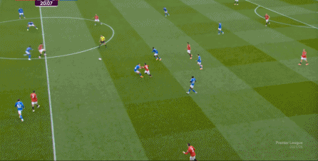 从开局角度的表现来看,这可能又要变成一场曼联打得可能很艰难的比赛,但在第8分钟,几乎是曼联第一次打成型的阵地战进攻,曼联便取得了进球: